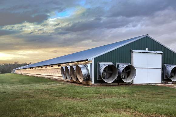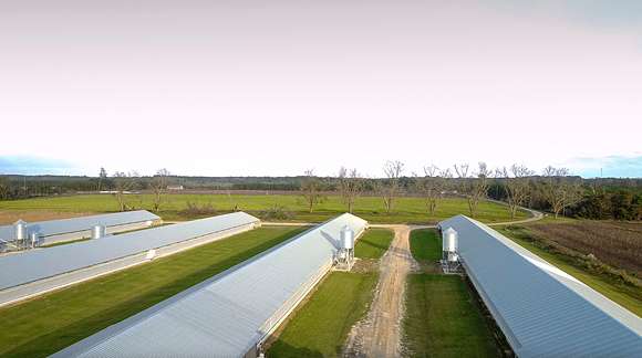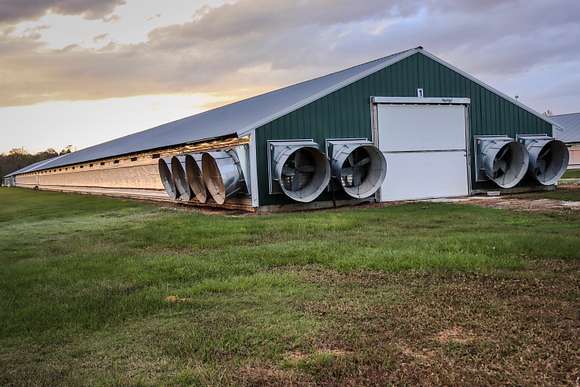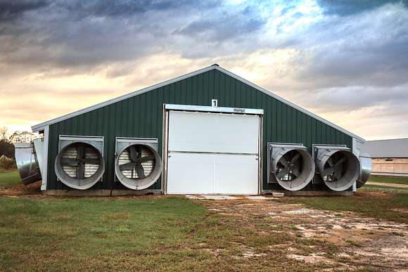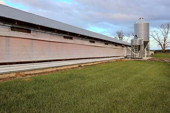 Seize the opportunity to own 45 acres of versatile farmland, complete with a modern poultry operation and comfortable living space! The heart of the property features a poultry house, built in 2020, consisting of four 46 x 500ft units connected by two well-appointed office spaces. This commercial-grade facility is ideal for poultry farming, with ample room for operations and management.