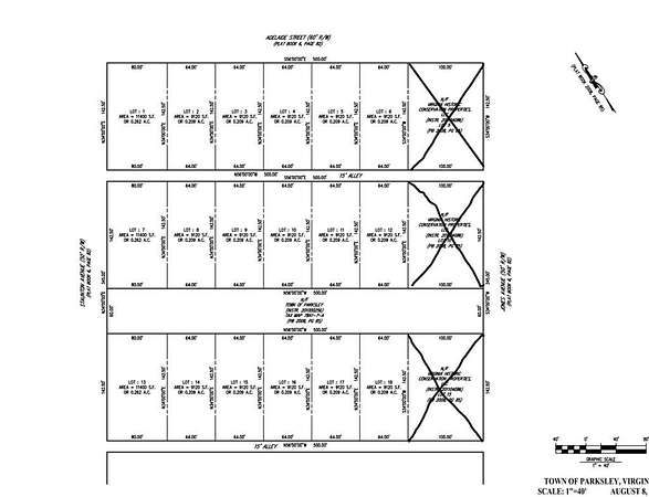 From Rt 13 turn west at the Parksley Royal Farms. Continue to the Town of Parksley, make a right on Dunne Ave. Take a left on Adelaide Street at the stop sign. Cross the old Railroad tracks and go three blocks. Vacant land parcel will be on your left.