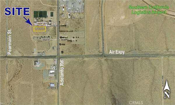 From Highway 395, exit at light on Air Expressway and head east. At first stop light (Adelanto Rd) turn left (north). Property is on left just south of pallet yard at 17834 Adelanto Rd