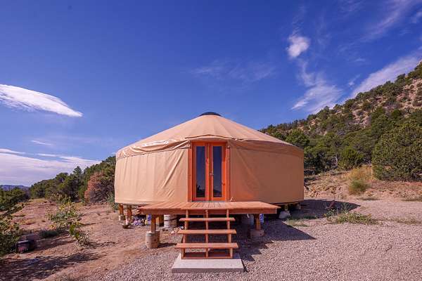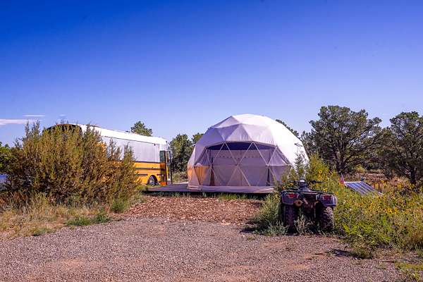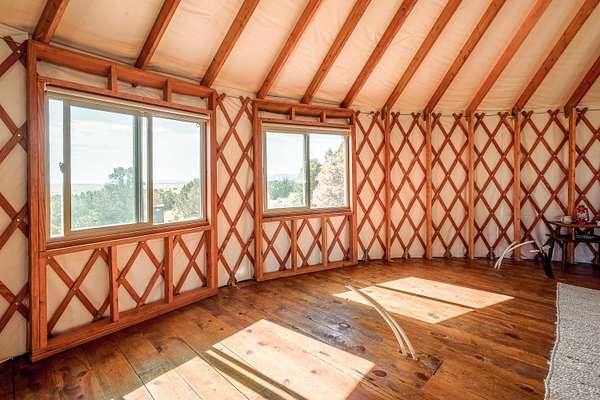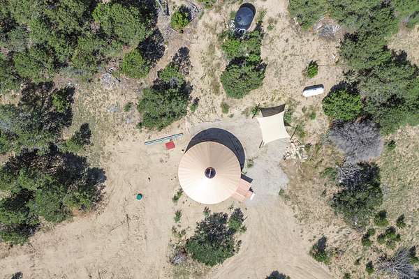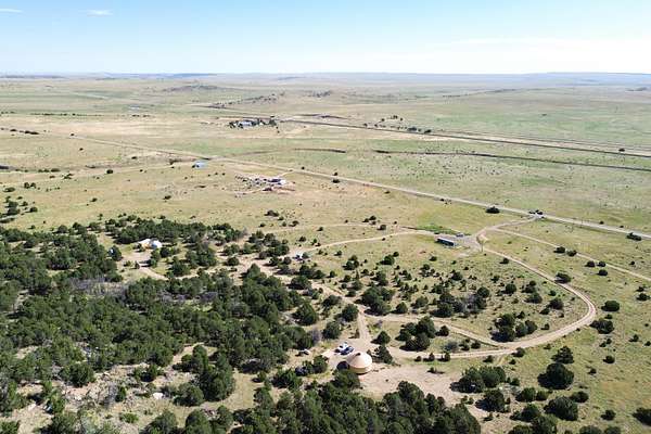 If you have been looking for the perfect start to a private GLAMPING RETREAT or to embrace a sustainable lifestyle then look no further, YOU FOUND IT! This property offers endless possibilities in a serene, natural setting with WATER, SEPTIC, POWER and NO HOA. It is right off of a paved and maintained county road and just minutes to I25. Discover the perfect blend of space, tranquility, and opportunity with this exceptional 35+ acre lot. This expansive property is ready to fulfill your dreams and comes with unique and practical inclusions: a cozy 30' yurt (just over 700 SF and permitted) with its own platform and plumbed for septic, water and propane; a distinctive 20' dome with a platform; a well-crafted chicken coop with an adjoining run with fencing installed a foot deep; a 3,000 gallon cistern for water storage; a 1,000-gallon propane tank; a school bus conversion and Connex container, and permitted septic. There is also 200 amp service and 4 tanks for hauling water. Call Today!