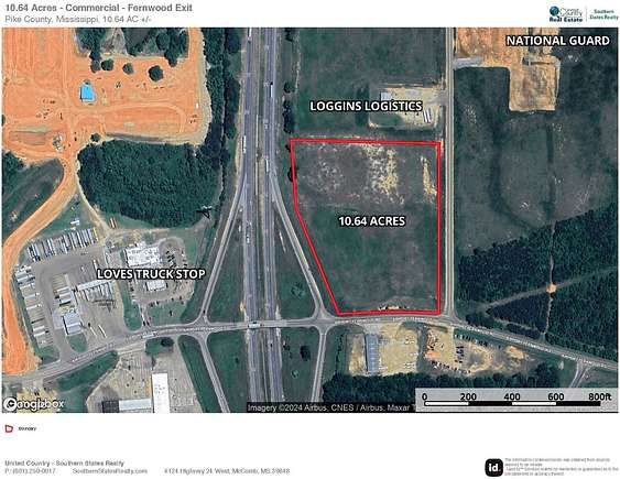Prime Commercial Property on the Fernwood Exit on I-55 in Pike County, Mississippi. Sewer and water on site. Excellent visibility from I-55 and road frontage on Airport Fernwood Rd and Gateway Rd. Located across from Love's Truck Stop and McDonalds and at the entrance of Pike County's Gateway Industrial Park where new projects include a Coca-Cola distribution center, John Deere dealership and service center, a national trucking logistics company, and a state-of-the-art National Guard Readiness Center. No Zoning!