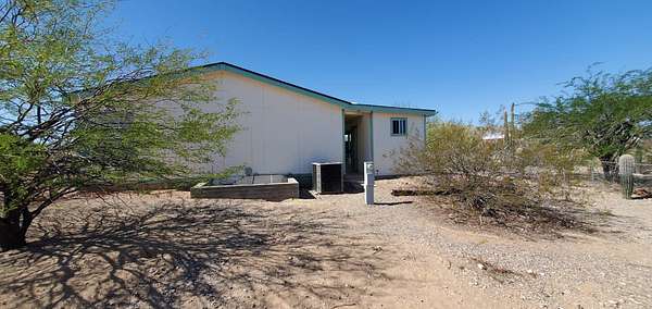 Beautiful views and Quiet enjoyment! 3BR/2ba affixed manufactured home sits on 2 acres with stunning views of the Sonoran Desert. Approx 1900sq ft. The main home offers 2BRs and a full bath at the south end of the home and the north end you will find the Master Suite and a full bath. In between are the family and formal living rooms, dining room with sliders going out to the covered patio. Plenty of room in the kitchen for a breakfast nook. Large inside laundry room with ample space for an extra refrigerator or freezer. The back patio is covered for outside enjoyment and offers a jacuzzi surrounded by a privacy fence. Several outbuildings are on the property for extra storage. Located on the eastside of the acreage is the tiny home. The home is a 1 BR/1bath fully furnished home. There is a long-term tenant in place at the present but has potential to make a great Airbnb or mother-in-law quarters. There is a roomy loft that accommodates two twin beds and additional storage. The rear of the home offers ample space to install a washer and dryer. Bring your finishing touches and make this your Oasis in the desert.