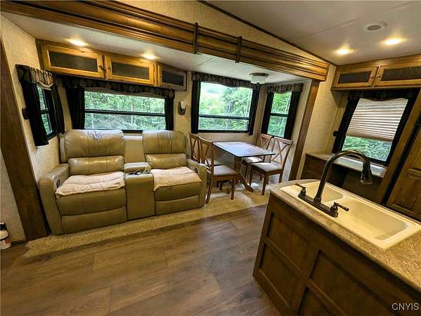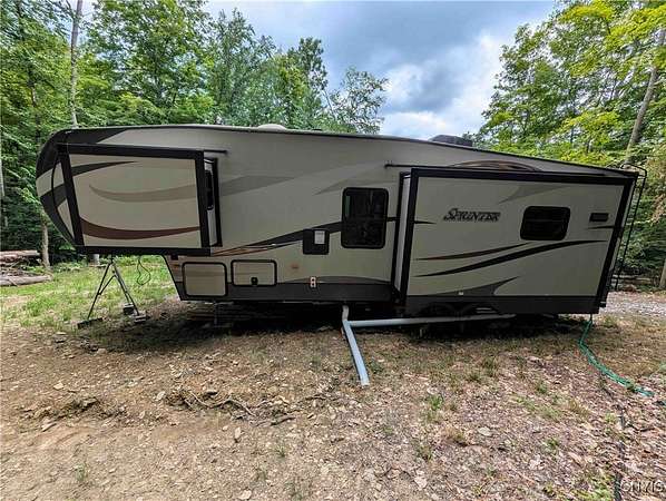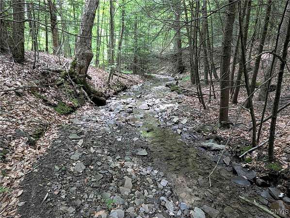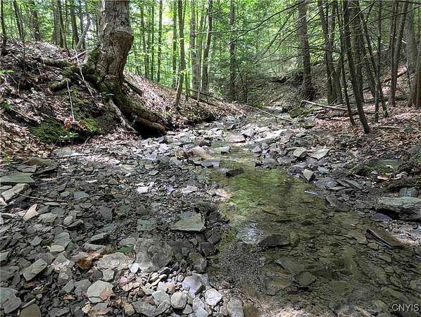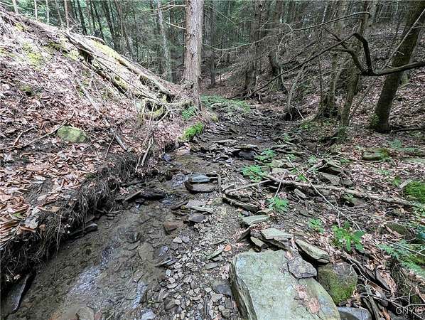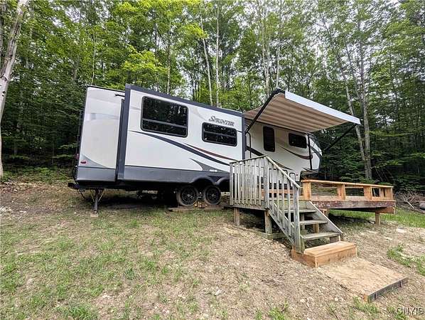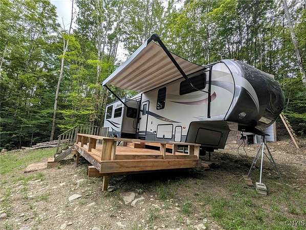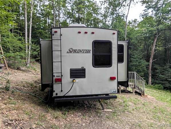 This secluded property includes a camper and 2 streams on 6.68 acres located in Cohocton NY, Steuben County. Escape to the peace and quiet of this wooded getaway featuring a fully functional campsite with an existing 31-foot Keystone Sprinter camper. Nestled in the woods, the property is accessed by a gravel driveway leading off a paved road and opens up to a private, established campsite overlooking a small meadow. The camper includes slide-outs for extra space and sits beside a deck perfect for relaxing and enjoying the natural surroundings. The land offers diverse terrain with two streams running through the lower portion of the property. From the creek bottom, the property rises gradually to the back boundary extending nearly 1,500 feet from the road. A mixed forest of hardwoods and pockets of hemlock provides excellent cover for wildlife, and the current owners have successfully hunted deer and even harvested a black bear. The campsite is well-equipped with a gravity-fed water tank providing running water to the camper, and a generator (included in the sale) supplies electricity. With very few neighbors nearby, this is an ideal location for anyone seeking recreation and privacy, surrounded by nature. Only a mile away, Neils Creek, stocked annually with trout by NYS, offers quality fishing opportunities. Whether you're looking for a weekend getaway, a hunting basecamp, or a peaceful escape, this property is ready to enjoy.