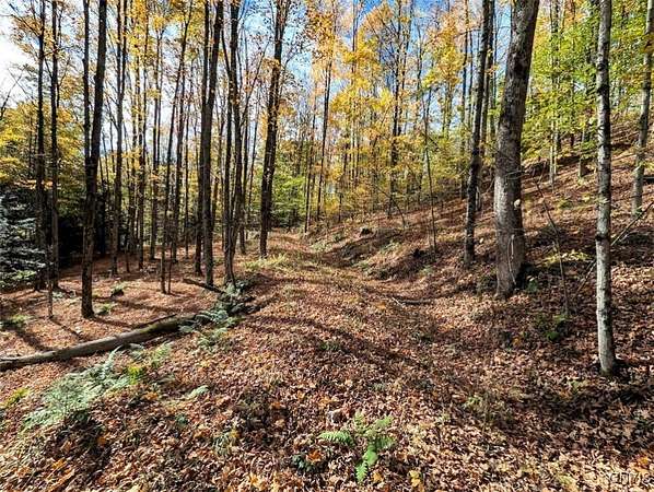 This 9 acre recreational property consists of woodlands with a stream located in Cohocton NY, Steuben County. Situated along a quiet rural paved road in the hills of Cohocton is this completely wooded 8.93-acre property. A great location to escape and enjoy the outdoors in a private country setting. From the road, the land slopes down through a mix of hardwoods and scattered hemlock trees to a seasonal stream meandering through the bottom of the land. Beyond the creek bottom, the land rises gently toward the back of the property stretching more than 450 yards from the road. This scenic and secluded tract offers excellent opportunities for recreation, hiking, hunting, and building your getaway cabin. The area is abundant with wildlife, and trout fishing can be enjoyed in nearby Neil Creek, located less than a mile away. The property is easily accessible, just minutes from Interstate 390 and approximately an hour south of Rochester, NY. With some improvements, a driveway could be established leading to a private camp or cabin site overlooking the stream, with electricity conveniently available at the road. An existing survey is available, and all oil, gas, and mineral rights convey to the new owner.