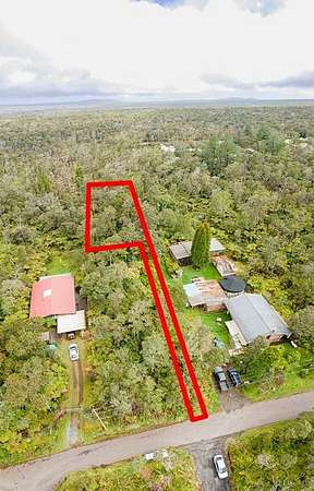 Build your dream retreat on this wooded flag lot on a paved cul-de-sac in the cool climes of Ohia Estates subdivision, near Volcano Village on the Big Island, where you are surrounded by nature. About 10 minutes (5 miles) away from Volcano National Park for great hikes, Volcano Golf Course, Volcano Winery, and amenities in Volcano village, such as art galleries, delicious dining options (Kilauea Lodge, Cafe Ono, Ohelo Cafe, etc.), and other amenities such as post office, hardware store, general stores, farmers market, and so on. About 40 minutes (33 mile) from Punalu'u Beach (black sand beach with good facilities) and about 40 minutes (29 miles) from the heart of Hilo. No CC&R or road maintenance fees. Overhead electricity from HELCO, no SSPP.