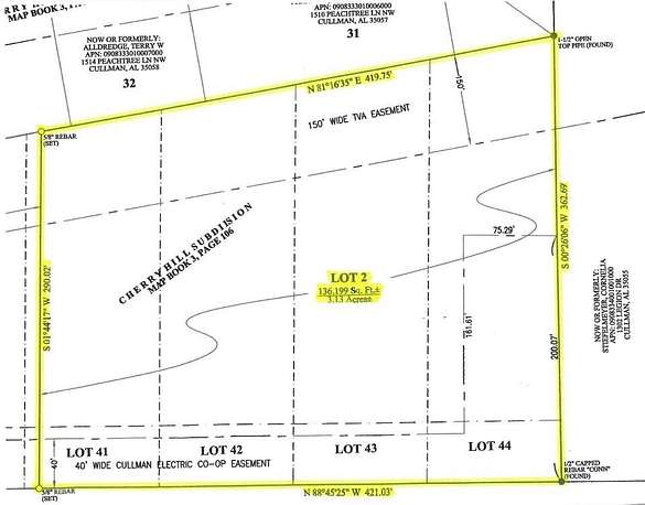 FROM CULLMAN GO 31 NORTH TO 157, TURN RIGHT, GO 600 FT AND PROPERTY WILL START ON LEFT, ACROSS 157 FROMMARVINS AND BILL SMITH CAR DEALERSHIP.