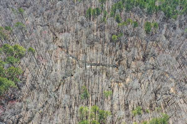 The terrain is a mix of rolling hills, hardwood creek bottoms, and ridgetops with a good blend of timber. The understory is open and easy to walk through, and there are several old roadbeds that could be cleaned up with minimal effort.