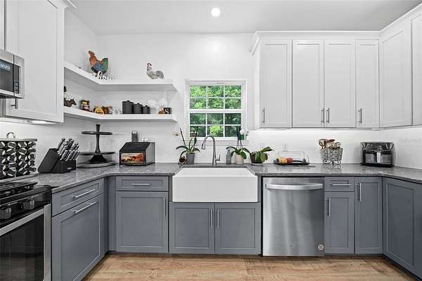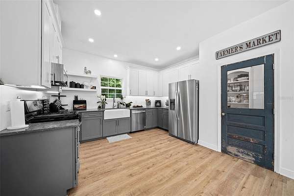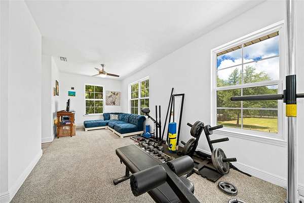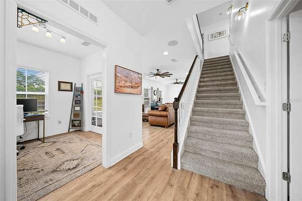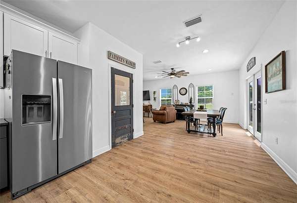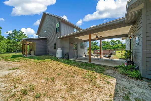 Bring your horses! This beautiful 2 story farmhouse is less than 4yrs old and in the perfect location to I-75 and a short drive(15mins) to Gainesville. Propertyline is suurounded by trees which gives tremendous privacy! Inside the home boast 9ft ceilings and light oak laminate flooring throught out common areas on 1st floor. Kitchen includes a walk-in pantry, modern two tone cabinetry with amazing quartz countertops! Dining is open to kitchen and living area. A nice size primary suit located on the 1st floor with large en-suit bathroom that includes a relaxing soaking tub and walk-in closet. Work from home in your very own 1st floor office! Upstairs includes 2 great sized rooms that both host en-suit full baths and walk through closets. Also, on the 2nd story is a large bonus room that could easliy be used for whatever you need game room, media room, weight room etc. Outside, enjoy the nature under the breezeway sitting area or the beautiful porch that wraps half way around the house. This location is so convient to stores, riding trails, schools you name it!