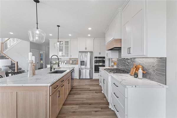 Welcome home to the Kinsley II built by TH Construction. This four bed, four bath two story is definitely, one to catch the eye. The main floor consists of tall ceilings, v-groove glass doors to the large front, office/den, half bath, and entry closet to welcome you into the home. The kitchen is loaded with custom cabinets, large center island, and butlers pantry all finished with granite countertops! The dining room is connected to the kitchen with a lot of extra space in between, the living room is finished with large windows and a stone surround gas fireplace with a wood mantle. Take a walk in from the large 4 car garage to see a spacious mudroom and another entry closet! The upstairs is finished with a spacious loft with a built-in entertainment center. The primary bedroom boasts vaulted ceilings, private bath with a dual bowl vanity and a walk in tile shower, in addition, a walk in closet. The upper level also consists of an additional bedroom with a private bathroom! There are 2 additional bedrooms connected with a Jack and Jill bathroom, perfect and convenient, there is also a large laundry room with a sink and vanity. The basement is unfinished but with potential for a 5th and 6th bedroom, bathroom, and a large sized family room. All set on 2.01 Acres in the brand new development Hidden Prairie.