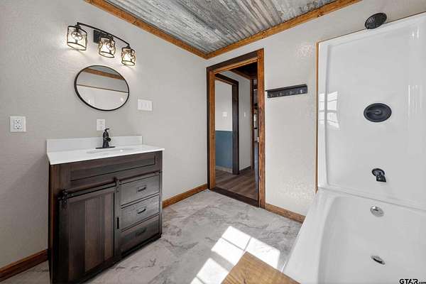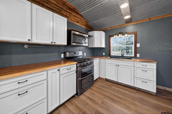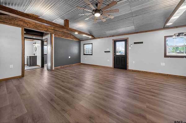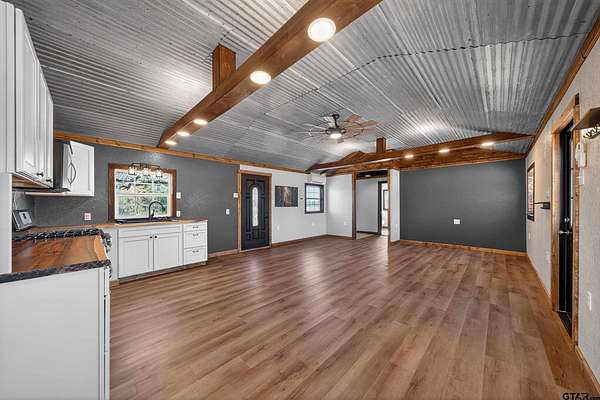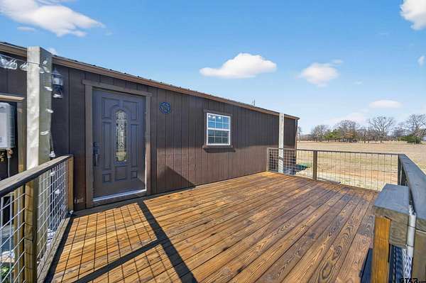 IDEAL LOCATION is this scenic country setting just minutes from town. Stunning property with 2-bd 2-bth home on 5+ acres is move-in ready! Boasting abundant ranch-style charm that features many updates like fresh stain on exterior and deck, new skirting, custom wood details and fresh paint throughout interior. The open-floor plan and kitchen/dining area is perfect for family gathering and entertaining, full-size washer dryer area for extra pantry storage, and the on-demand gas water heater ensures consistent supply of instant hot water. The roomy kitchen features a 6-burner double oven, microwave, farm sink, and custom butcher block counter tops. Relax on the spacious back deck while you enjoy the morning sunrise and peaceful evenings; the fully fenced deck provides a secure area for kids & pets. Located outside the city limits with NO restrictions means you're free to create your own personal farmstead. The open pasture allows plenty of space for horses, farm animals, garden or shop. Great location conveniently located minutes from US-Hwy 69 between Alba and Emory, this property offers quick access to shopping, medical, schools, community services, and the Dallas Metroplex. Property surveyed from larger tract and pending update to include house; refer to plat in documents. Information deemed reliable but not guaranteed and should be verified by Buyer and Buyer's Agent.
