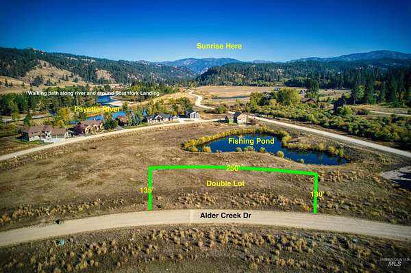 One of Two Lots on Alder Creek Lane in the Southfork Landing subdivision with a gorgeous, fish-stocked pond in the future back yard. Incredible sunrises over the pond from your back porch, Beautiful sunsets from your front room. Just an hour from Boise, this retreat has a community walking trail along the Southfork of the Payette River, also rafting/kayak launch. Watch Eagles, Elk, Deer, Turkeys, etc. In the winter, a cross-country ski trail. Beautiful - Everywhere!
