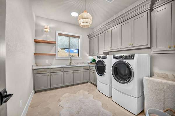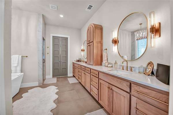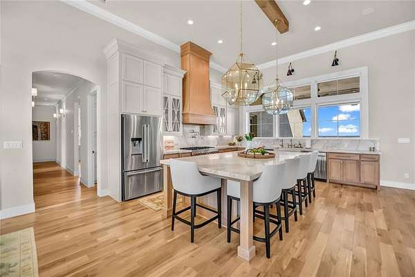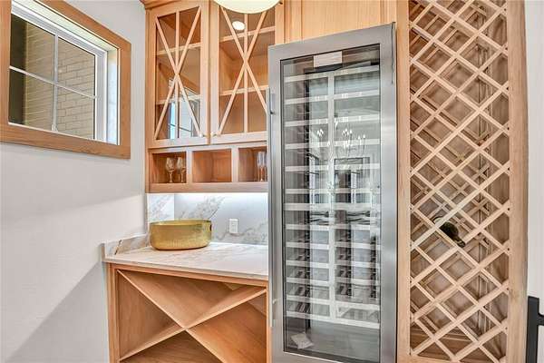 - Built-In Features, Built-In Wine Cooler, Cathedral Ceiling(s), Chandelier, Decorative Lighting, Double Vanity, Eat-In Kitchen, High Speed Internet Available, Kitchen Island, Natural Woodwork, Open Floorplan, Pantry, Vaulted Ceiling(s), Walk-In Closet(s), Wet Bar