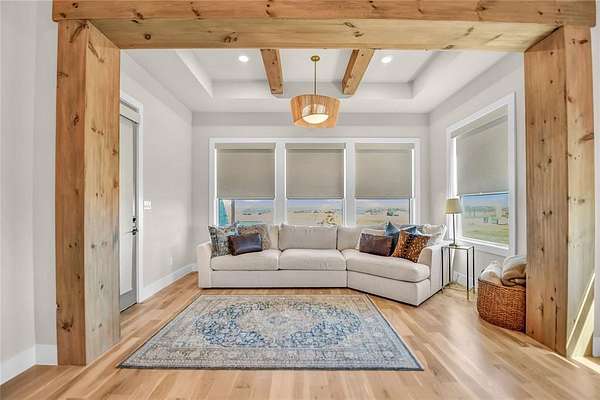 This stunning, CT custom home offers 4 bedroom and 5 and half baths with a thoughtfully designed layout that blends luxury, comfort, and functionality. Inside wood floors throughout, striking ceiling beams add warmth and character to the interior. The home features a dedicated office, and inviting media room, and a spacious game room, providing plenty of room to work, relax, and entertain. The kitchen is truly a gourmet kitchen with large working pantry, custom cabinetry, and dedicated wine room. Primary bedroom has a sitting area and a spa bathroom with a steam shower. Home is energy efficient with quality construction spray foam. heat pump and gas water heater. Step outside to your private patio retreat with an outdoor kitchen, fireplace, pool with spa, putting green, and magnificent views for miles. The outdoor living experience is completed by a 1125 sq feet pool house with a bar and serving window and a fire pit. Total of 5,889 of livable sq footage. Home is wired with a sound system throughout inside and outside the house. This home is top notch through and through.