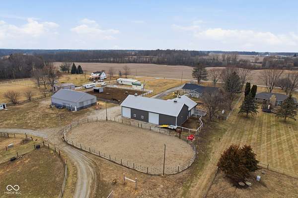 Alexandria, IN Dream equestrian property! This turnkey horse lover's paradise features a spacious, well-maintained 2411 sq ft home with recent major updates-including a brand new roof, new HVAC system, encapsulated crawl space with dehumidifier for added comfort and protection, and all appliances staying (with warranties-they're all less than 2 years old!). Cozy up by the wood-burning fireplace in the main living area or relax in the master bedroom with its own gas fireplace. Enjoy the 3-season room** complete with a cooktop and mini-split for year-round use! Top-notch equestrian facilities include: - One 36x36 horse barn with concrete stalls, rubber mats throughout, and four stalls , two 10x10 overhead doors that are on each end to allow easy access and cleaning. - 100-gallon water heater dedicated for horse baths - Another top-notch insulated barn on 8 inches of concrete-perfect as a shop, heavy machinery storage, or additional workspace - Massive full shop ideal for running a business, equipment storage, or all your toys! 40x77 main shop with 14x14, 17x17 overhead doors(HIGH CLEARANCE) - Huge 145' x 70' riding arena with lights and 6 inches of sand (ideal depth for safe, effective horse training) - 3/4 mile dedicated track for exercising and training horses - 3 separated electric fence pastures Prime location in peaceful Alexandria, IN-just 5 miles from I-69 for easy access, and conveniently only about 1 hour from both Fort Wayne to the north and Indianapolis to the south,15 minutes from Anderson and Muncie,40 minutes from Fishers. Enjoy the best of both worlds: serene country living with quick drives to big-city amenities like indoor/outdoor shopping, horse racing, entertainment, dining, and more-perfect for business, family, or weekend getaways! If you're a serious horse enthusiast or need a serious workspace setup, this is IT.
