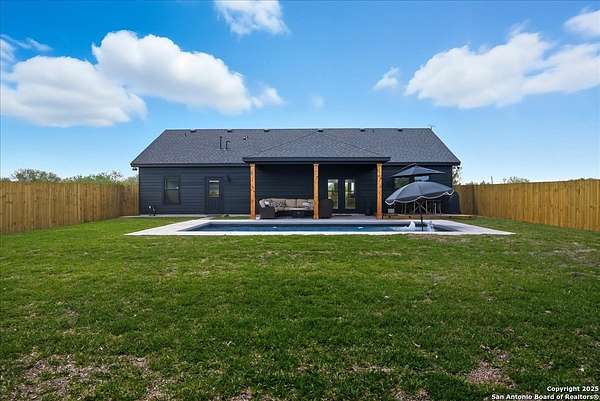 Equestrian Farm in South Texas! New Contemporary Farm House on 10 treed acres. A horse lovers dream whether you are a equestrian or western rider. Your hobby farm is all set up for you. On the acreage you will find a large barn with several horse stalls and additional area for new stalls. The barn has a large workout area and can be used to store feed or hay. There is an additional room outfitted with electrical and plumbing to have an office, tack room with bathroom or an in-law apartment. Outside the barn is a full RV hookup site for your friends or family. There is 50 amp service with separate water and separate septic system. Your private oasis in the back yard has a brand new pool (2025 for all), brand new deck, privacy fence and landscaping. There is also a matching shed with all new water filtration system for the main home with additional storage space. The main house was built in 2024 and has approximately 1900 sq ft of open living space hosing 3 BR and 2 BA with an office for those that work from home. Luxury plank flooring fills the home. The home has an open extra large pantry and amazing chefs kitchen equipped with upscaled appliances from GE Cafe. The dishwasher has double drawers for small or large loads. The Cafe oven is all propane with wifi connection. The island is large and is open to the great room. The property is fenced around the perimeter showing the lot lines. In the back of the acreage sits a smaller barn for your additional animals or just storage. Alice is 7-8 minutes and has HEB, Wal-Mart, Starbucks, 7Brew YMCA and ChicfilA just to name a few amenities. The town itself is growing yet has a hometown feel. MAKE THIS YOUR NEW HOME TODAY!