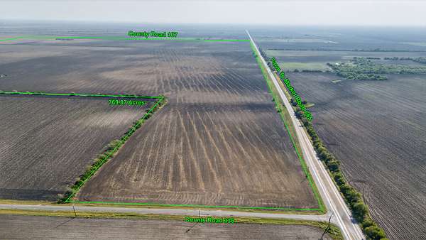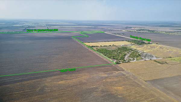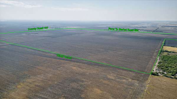 Selling 770 contiguous acres of South Texas Coastal Bend farm ground. Immediately North of FM 665 adjacent to the Jim Wells County / Nueces County line. This farm has a solid history of primarily cotton and grain production. The land is mostly level, with a topographical overlay showing only slight elevation changes (within a range of 5') across the field. Soil profiles consist of all fine sandy loam classifications. All tracts have individual agricultural exempt status for county tax valuations. This acreage has only one one pipeline ROW, (which is decommissioned) and no history of oil field activity. This acreage offers over 7900' of FM 665 road frontage. There is additional county road frontage on two sides, offering over 650' of CR 336 on the west side of the acreage and over 2600' of frontage on CR 107 to the east. This acreage should be appealing to producers as large contiguous parcels like this one are scarce these days. Investors and section 1031 buyers should find this an attractive possibility given that US farmland has a long track record of price appreciation with very little volatility, making it an outstanding long term investment. A well established long term tenant farmer is in place that pays attractive annual income via a sharecropping lease. Last but not least this tract has OUTSTANDING dove hunting!!
