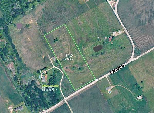 Next door to property addressed as: 5100 Fm 1183, Ennis, TX 75119. This is not the seller so do NOT park in the neighbor's driveway.
