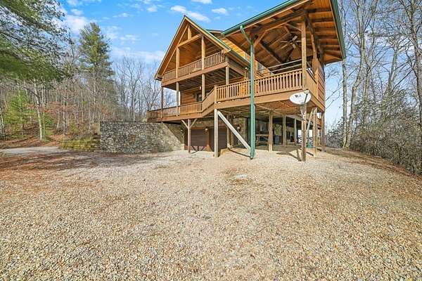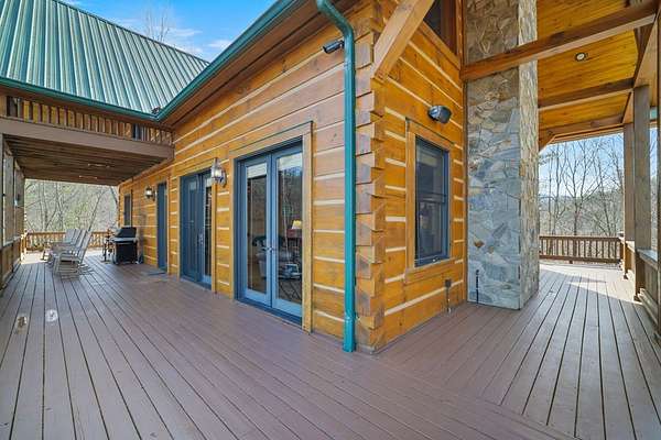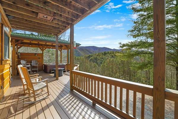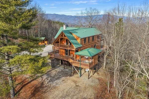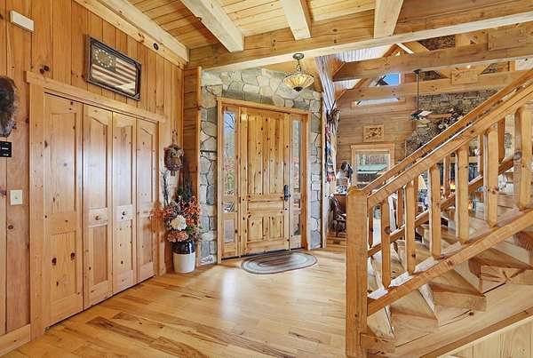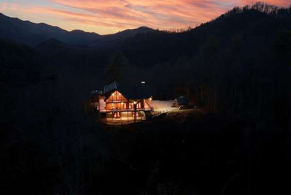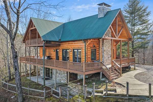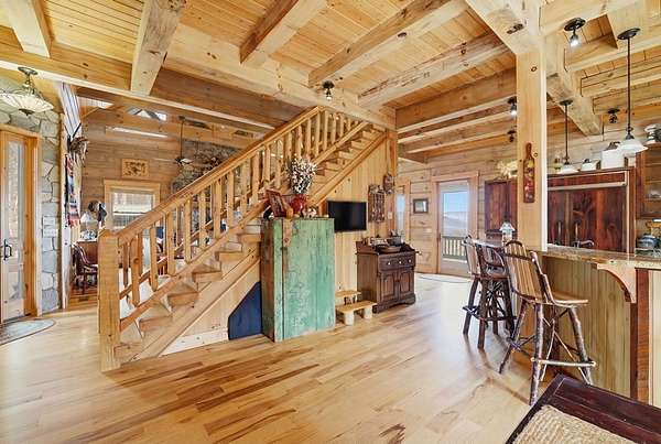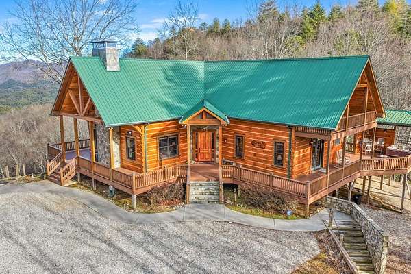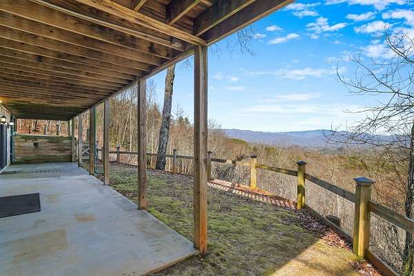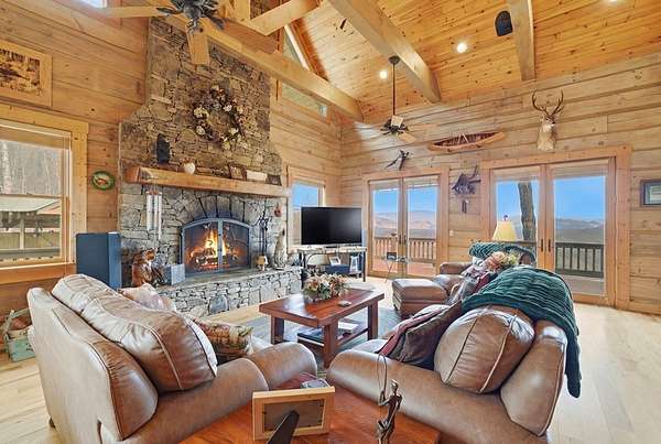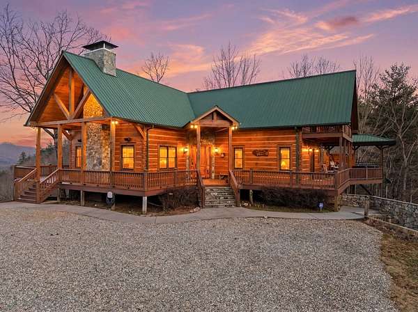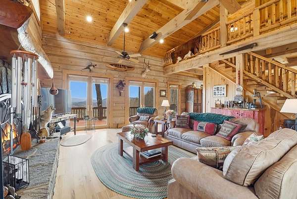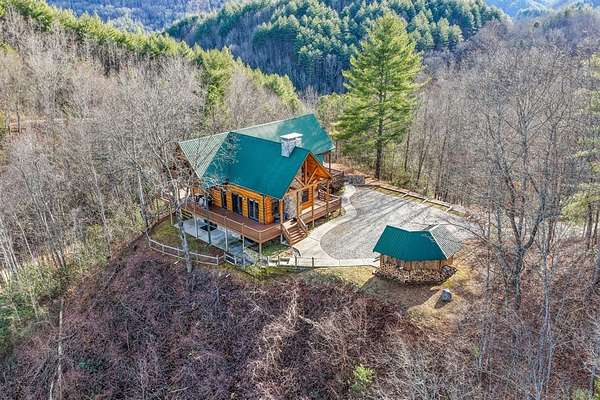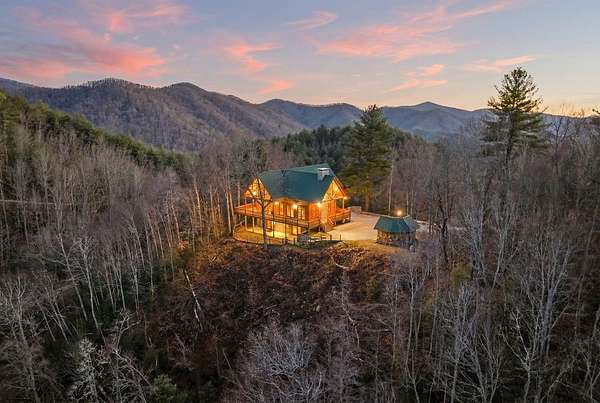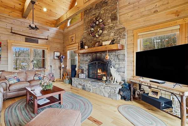 Welcome to Quail Mountain — a four-bedroom, three-and-a-half-bath mountain lodge that defines luxury cabin living. Soaring open ceilings, a massive stone wood-burning fireplace, and a full wraparound deck set the tone from the moment you arrive. Sweeping mountain views greet you from every room, and at over 3,000 feet of elevation, you'll enjoy noticeably cooler temperatures day and night. No detail has been overlooked: water-heated European floors, luxury appliances, and handcrafted cabinetry create a kitchen and living space that any cook will love. The outdoor firepit is perfect for evenings under the stars. The attached two-car garage handles all your mountain toys and storage needs. Once a thriving vacation rental, this lodge conveys mostly furnished — including Starlink internet — and is move-in ready with new HVAC, new thermostats, new exterior stain, and new chimney stonework. Located five minutes from Fontana Lake access and fifteen minutes from downtown Bryson City, this property offers privacy, stunning views, and unbeatable convenience. (Note: property is served by a three-bedroom septic system.)