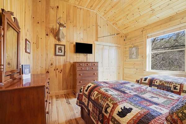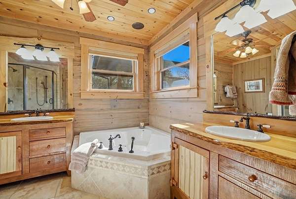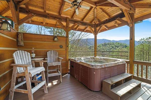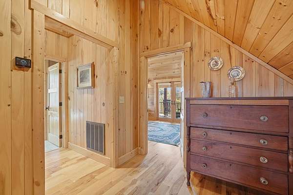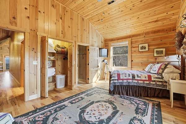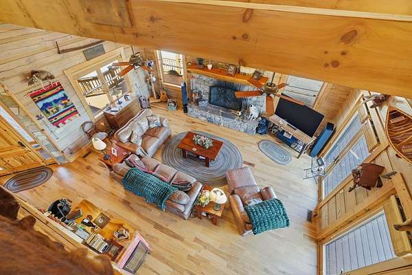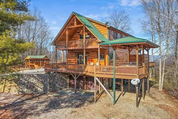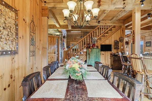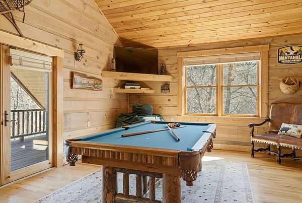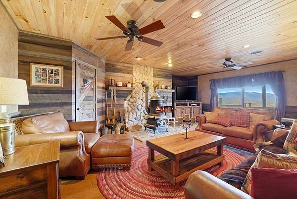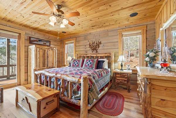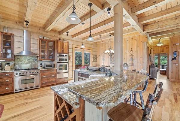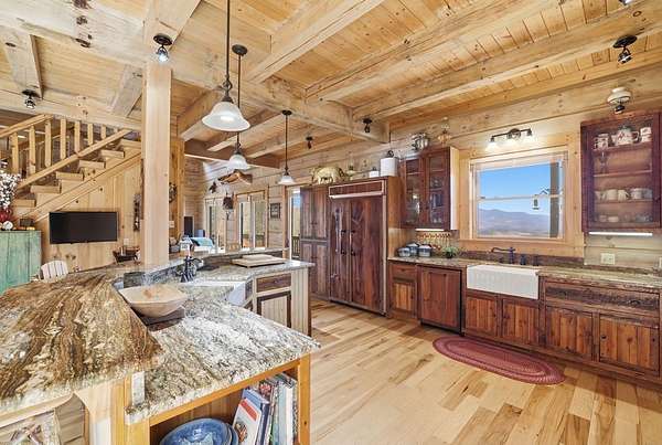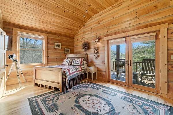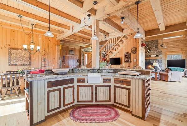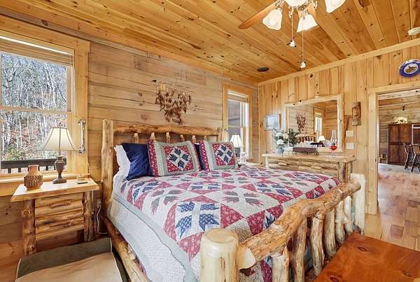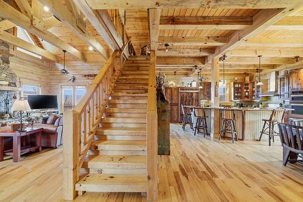 Welcome to Quail Mountain — a four-bedroom, three-and-a-half-bath mountain lodge that defines luxury cabin living. Soaring open ceilings, a massive stone wood-burning fireplace, and a full wraparound deck set the tone from the moment you arrive. Sweeping mountain views greet you from every room, and at over 3,000 feet of elevation, you'll enjoy noticeably cooler temperatures day and night. No detail has been overlooked: water-heated European floors, luxury appliances, and handcrafted cabinetry create a kitchen and living space that any cook will love. The outdoor firepit is perfect for evenings under the stars. The attached two-car garage handles all your mountain toys and storage needs. Once a thriving vacation rental, this lodge conveys mostly furnished — including Starlink internet — and is move-in ready with new HVAC, new thermostats, new exterior stain, and new chimney stonework. Located five minutes from Fontana Lake access and fifteen minutes from downtown Bryson City, this property offers privacy, stunning views, and unbeatable convenience. (Note: property is served by a three-bedroom septic system.)