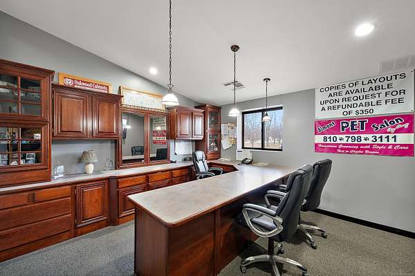 This move-in ready industrial facility with excellent visibility and access, offers 12,800 square feet of versatile space, including 3,200 square feet of office/showroom space and 9,600 square feet of shop space. The building is designed for efficiency and productivity, featuring air lines throughout the shop for convenient use of pneumatic tools and machinery, a fully equipped paint booth with proper ventilation, and three overhead doors for seamless material flow and operations.The interior office area includes two private offices, a reception counter, showroom space, and restroom facilities, providing a professional environment for administrative and customer-facing activities. Ample parking and a spacious shop layout make this property ideal for manufacturers, fabricators, or contractors. There is also room to expand behind the existing building, offering future growth potential