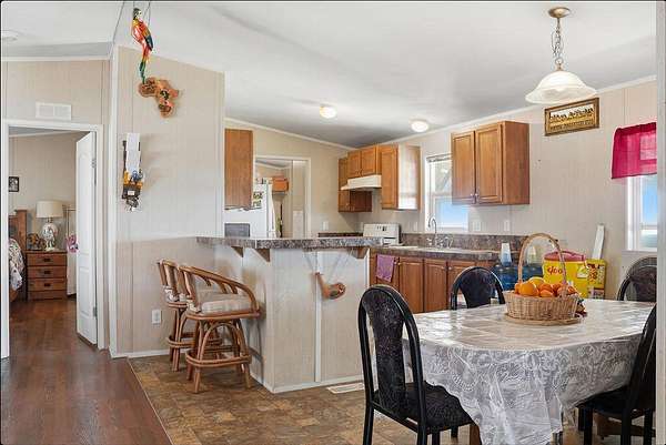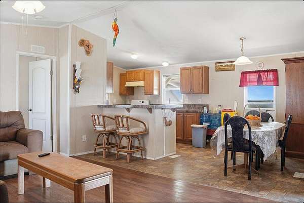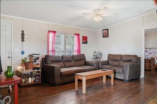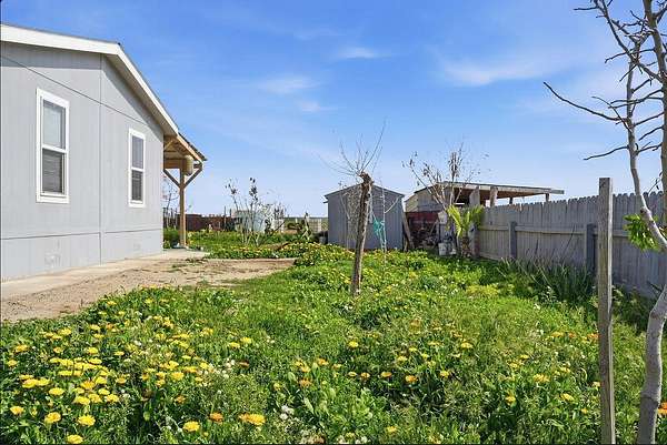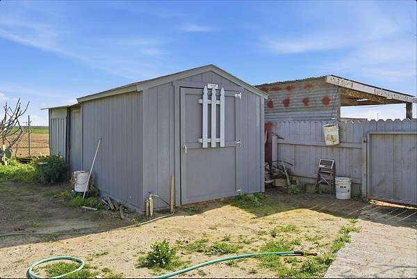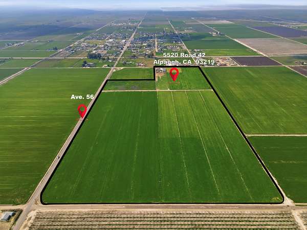 Exceptional 65-Acre Agricultural Opportunity. Discover the ideal blend of productive farmland and comfortable country living with this versatile 65-acre property. Approximately 50 acres are planted in 2-year-old alfalfa and 10 acres in oats, offering immediate agricultural productivity. The planted ground is serviced by the Alpaugh Irrigation District, and the owner has installed an extensive valve system to efficiently distribute water throughout the crop acreage. Electrical service is available, with power lines running along Road 46, which borders the property to the east, allowing for the addition of improvements to the site. An additional 5 acres are dedicated to the homesite and pasture area. The property consists of seven parcels under one APN, presenting potential subdivision opportunities for a future owner (buyer to verify with county). The manufactured home features 3 bedrooms and 2 bathrooms across 1,038 square feet of living space. A welcoming front porch and rear patio provide peaceful pasture views and the perfect setting to enjoy the surrounding countryside. The home is connected to public water through the Alpaugh Water District and natural gas service - a valuable convenience for rural property. Exterior improvements enhance both function and flexibility, including covered hay storage, two large water storage tanks, and a covered carport spacious enough to accommodate an RV. Ideally located close to town while offering the privacy and open space of country living, this property presents an outstanding opportunity for farmers, investors, or anyone seeking a rural lifestyle with income potential.