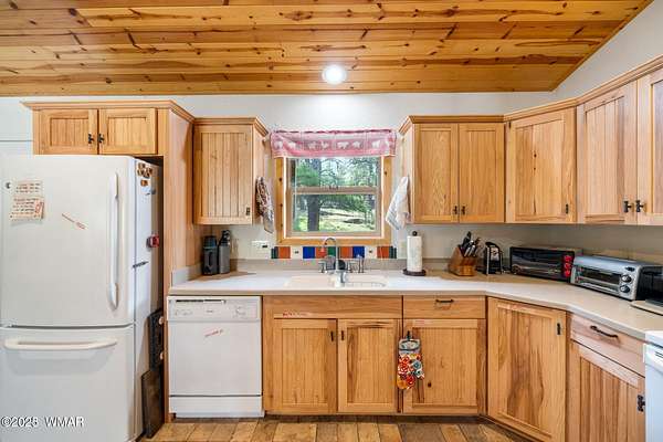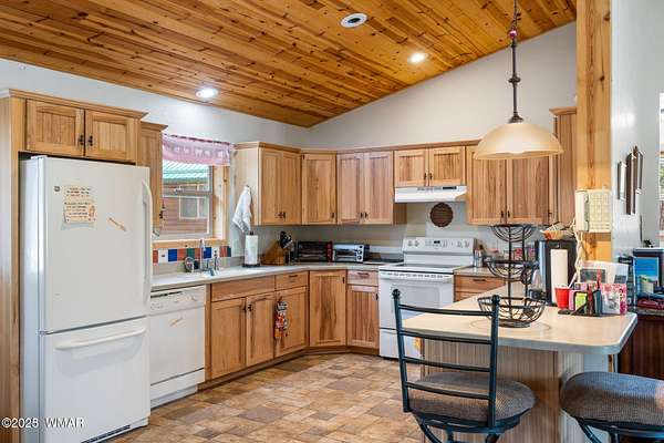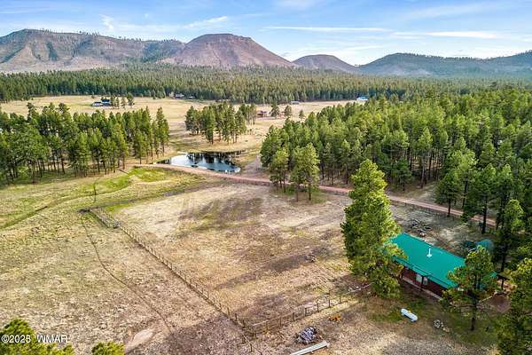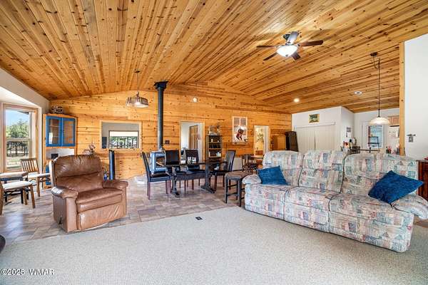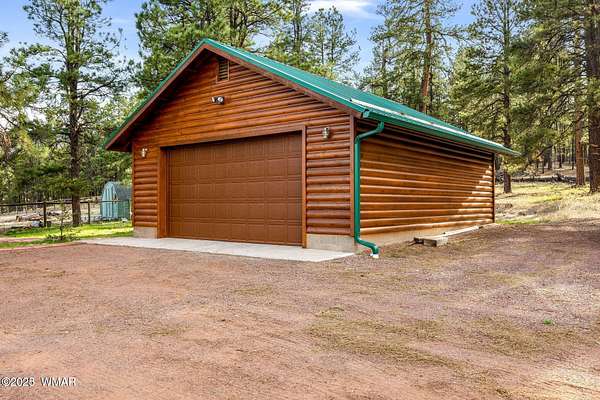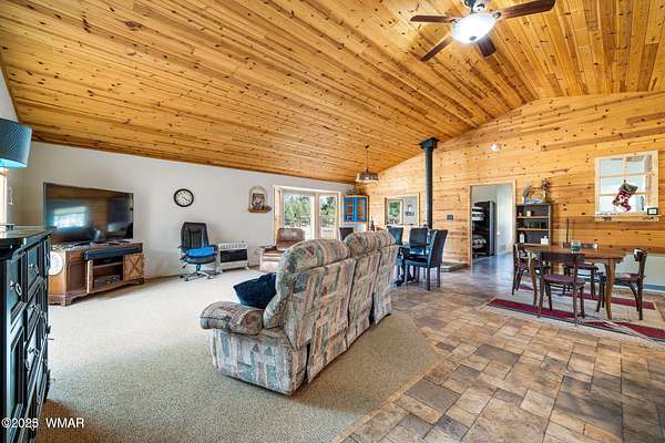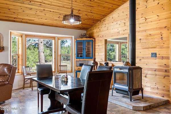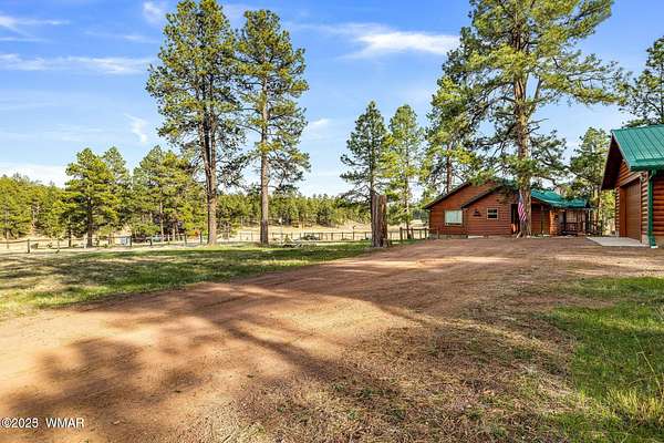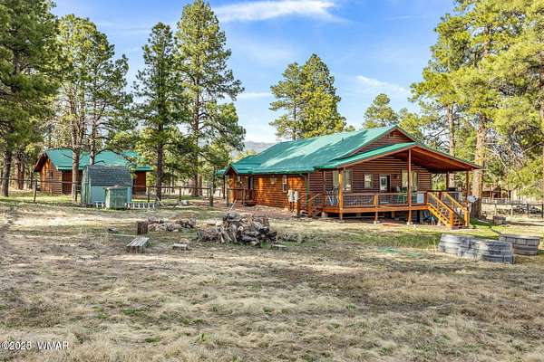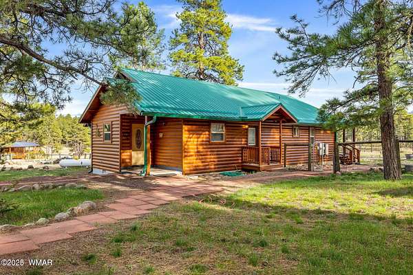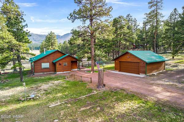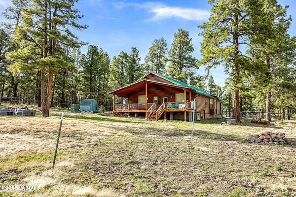 Sit on the back covered deck of this well maintained Alpine cabin and take in the scenery and open views while enjoying regular elk visits. Surrounded by nature and open space, there's room to roam, relax, and recharge. Cabin is nicely situated in the tall pines with a fenced yard, and open space for your animals, views of the area, and a small pond. Cabin features 2 bedrooms and 2 bathrooms with a large great room that boasts an efficient soapstone wood stove that will keep the cabin nice and warm. Hickory cabinets and Corian counter tops in the kitchen with roll out shelves and tons of storage. Large detached garage has space to work or store all of your extras. Come enjoy the peaceful and beautiful location in this very comfortable cabin.