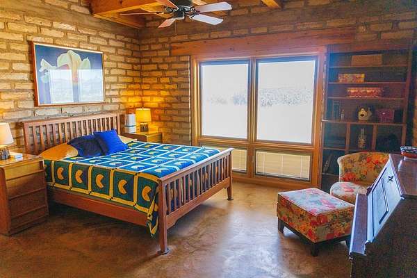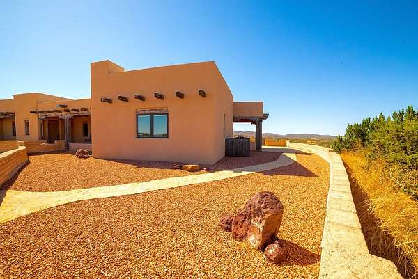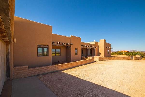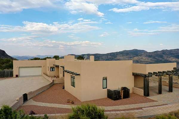 Est $7,659/mo3 Dark Sky is located at the highest point in the gated ranch community of Sierra la Rana. Situated on 10 acres with incredible views in every direction, this 5 bedroom 3 bath modern adobe estate is the perfect spot to make your home in West Texas. The house was constructed by renowned adobe builder Steve Belardo in 2013 out of 10 inch thick stabilized block walls with two master suites on either end, guest bedrooms/bath in the center, and great patios to enjoy the sunrises and sunsets.