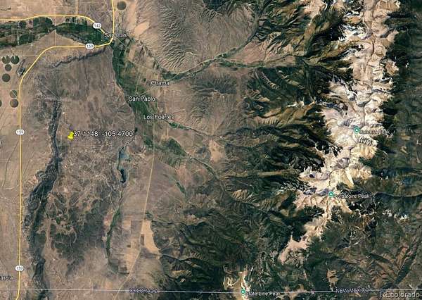 Coming from Fort Garland on State Route 159 into San Luis, turn left (east) at the Conoco gas station. Once you leave town this road is called P6. Follow for 2.5 miles until you come to a 4-way stop. Turn right on Rd. 21 and follow for 1.5 miles. Turn right on Rd. L5 (dirt road) and follow for 1.4 miles. Take a sharp left on Rd. 18.9. Go up the mountain for about 4 miles. You will pass by Dolomites Ranch (gate with 2 read posts) and get to Overland Way where you turn right(W). Follow for about 1.9 miles. Turn right (N) on Alta Mesa Drive. Follow for about 0.2 mile. The property is to your left (W).