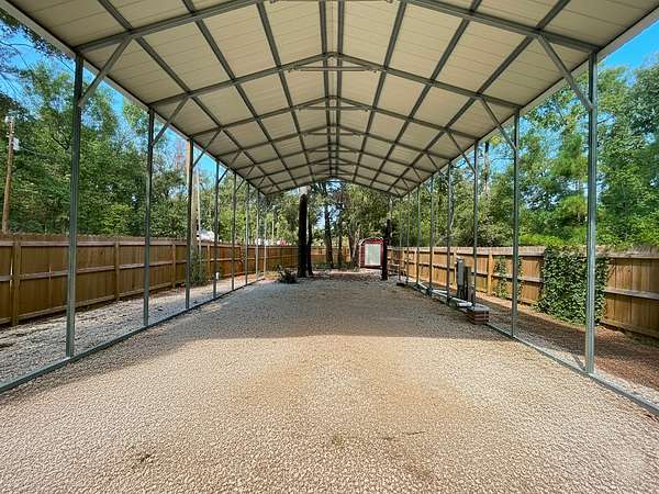 The property includes an oversized RV cover with gravel pad, extended driveway with culvert, and full perimeter fencing with a wide gate. Additional improvements ensure long-term durability and convenience, including 50 tons of compacted road base gravel, multiple loads of fill dirt for proper grading, and tree clearing for maximum use of space.