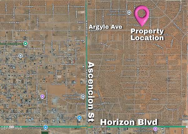 Est $141/moHalf acre on Ames Ave which is near Ascencion St & growth in Horizon Area. The lot next to it is also for sale - a total of 1 acre available. Property lines in photos are approximate based off county maps.