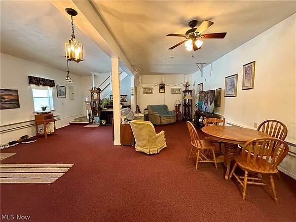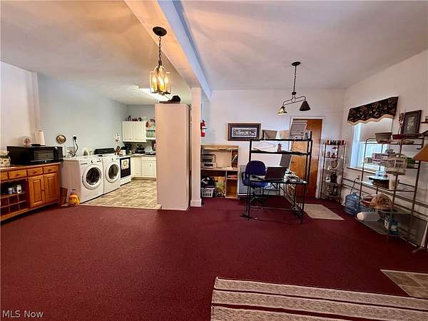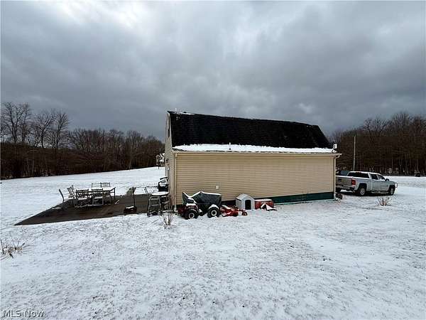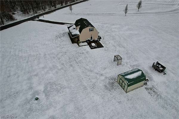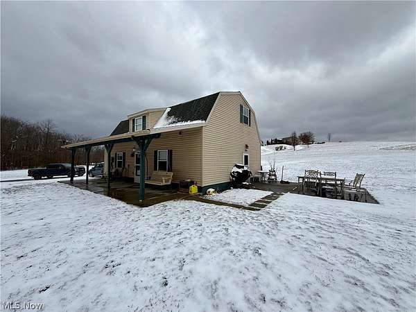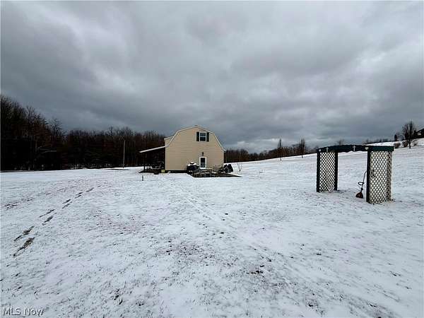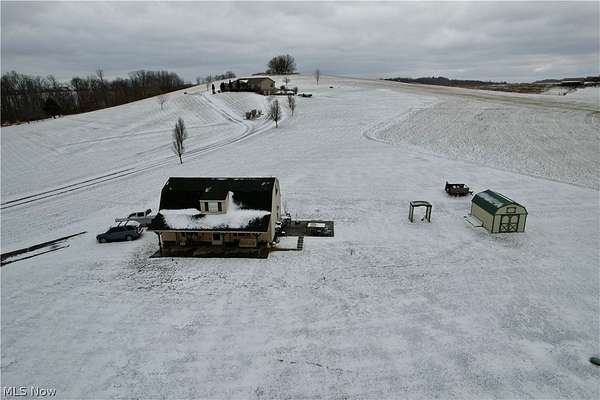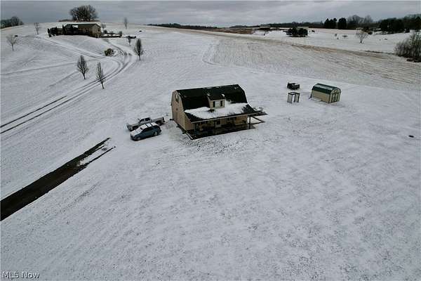Charming cottage-style barn home nestled on 2 beautiful acres, just 25 minutes from State Route 7! This unique property offers the perfect blend of cozy character and open-concept living. Relax and unwind on the inviting covered front porch before stepping inside to a spacious main floor featuring a bright great room that flows seamlessly into the kitchen-ideal for entertaining or everyday living. The main level also includes a full bathroom and convenient main-floor laundry. Upstairs, the generous 15x33 finished attic provides flexible space perfect for a primary bedroom, guest suite, home office, or bonus room, complete with a half bath. Enjoy the walk-out patio area overlooking the nice, flat acreage. The property also features a storage shed for added convenience. Electric heat throughout. Come see this charming home before it's gone!