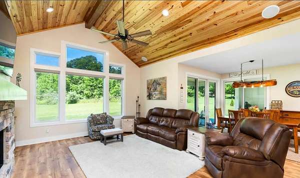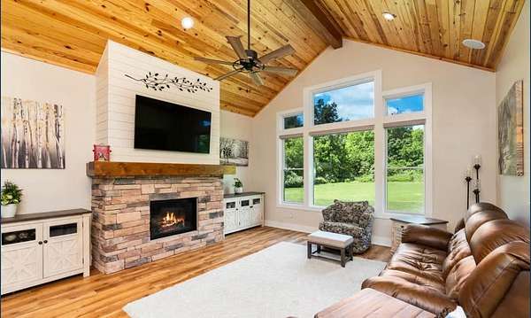 Discover the charm of this stunning new construction home, set to be completed in July 2026. This exquisite ranch-style residence combines modern farmhouse aesthetics with thoughtful design, offering a perfect blend of comfort and elegance. With 3 spacious bedrooms and 2 bathrooms, this home is designed for both relaxation and entertaining. Step inside to find an inviting open floor plan that seamlessly connects the family room to the gourmet kitchen, featuring upgraded countertops and stainless steel appliances, including a double oven and built-in microwave. The kitchen island serves as a central hub for gatherings, while the family room, adorned with recessed lighting and ceiling fans, creates a cozy atmosphere for everyday living. Retreat to the primary suite, complete with a luxurious soaking tub and walk-in closet, ensuring a private sanctuary. Additional features include a daylight basement with interior access, providing endless possibilities for customization, and an entry-level bedroom for convenience. Set on a generous 2.3-acre lot without an HOA, this home offers ample outdoor space for activities and future landscaping dreams. The side-entry garage and driveway provide convenient parking options. Embrace the opportunity to create lasting memories in a space designed for comfort and style. To be build home with similar construction; home pictured is another site.