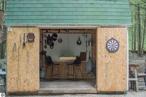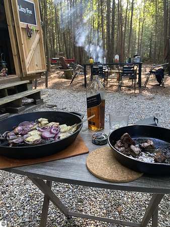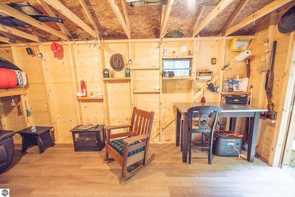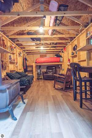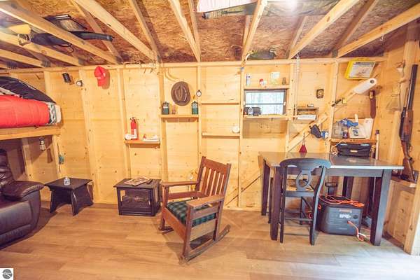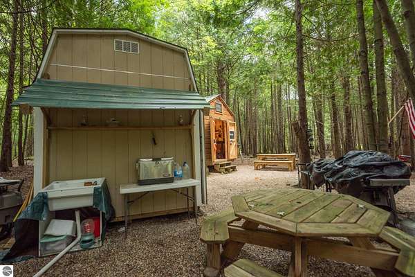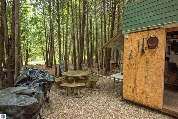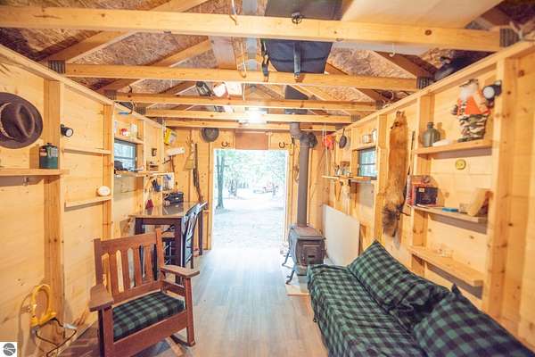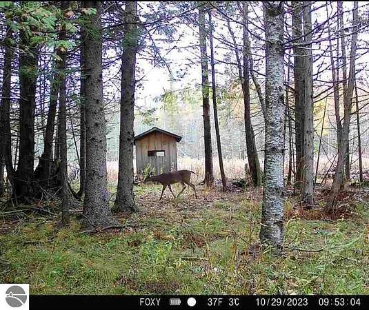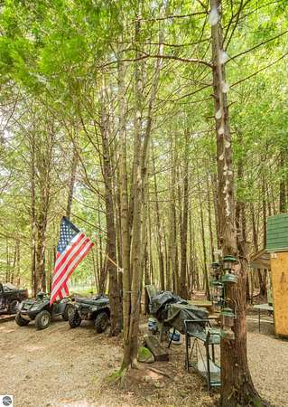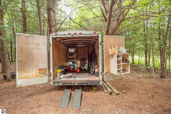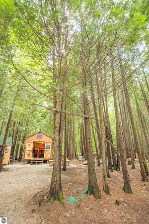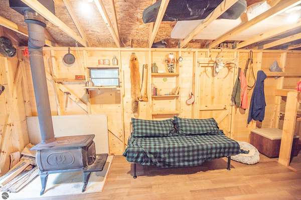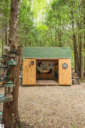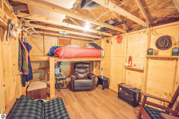 The "Lazy Fox" is a unique 26 acre recreation parcel developed over a decade into a turnkey, "off grid", family friendly, weekender for the camping, hiking, hunting and fishing enthusiast. Hunt and fish for white tailed deer, Black Bear, Turkey, Grouse, Pheasant, Rabbit, Brook Trout, Brown trout, and Northern Pike, or simply bring your friends up to Enjoy Northern Michigan. This established camp offers a bunk house, camp kitchen, Storage Trailer, picnic tables, tent pad area, cooking ware, tools, fire pit, grills, trails, blinds, and target practice areas all set far enough back where you can enjoy the peacefulness and quiet of nature. With ample parking, and storage for ATV'S & Toys everything is ready to go, or you can add a year round camper, or pole barn/barndominium as this parcel is located in the un-zoned township of Custer-giving you far more flexibility to create your own vision. This property is a short golf cart ride away from Schuss Mountain for golf, dining, skiing, and more while also being just minutes from Bellaire, Lake Bellaire, Torch Lake, The Grass River, and Shanty Creek. While mostly low land wetlands closer to the river, there are several areas that are not as wet set back from the over 900' of frontage on the Cedar River. There are endless ways to "rename" this property and make it your own-or simply enjoy it as it is with family and friends. All Measurements obtained from 3rd party sources and are deemed accurate however buyer should verify. Survey On File.