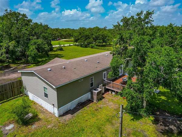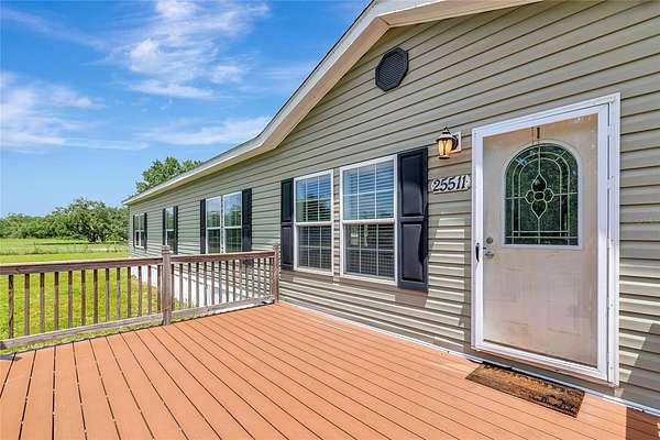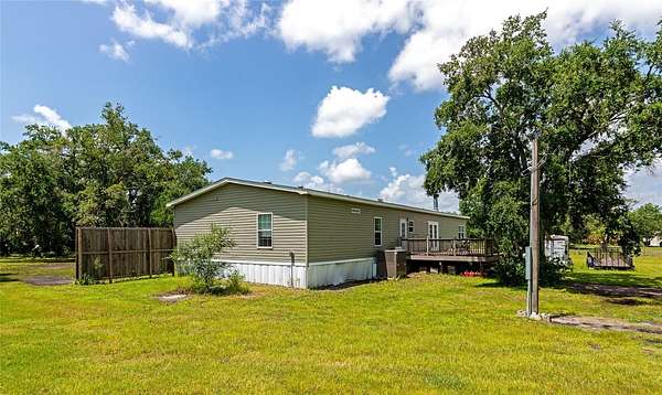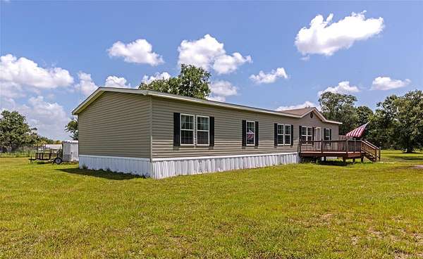 BUYERS FINANCING FELL THROUGH and now is your chance to discover this beautifully maintained and updated 4 bedroom, 2 bath manufactured home nestled on 5 high and dry upland acres, entirely outside of the flood zone, meaning no flood insurance required! Very solid mechanically with warranties on AC and hot water heater that carry over. This expansive property is fully fenced and ideal for those seeking space, privacy, and flexibility, bring your animals, toys, or even start your dream homestead. The home features a large open floor plan with generously sized bedrooms and living areas. A recently built wood deck graces both the front and rear entrances, perfect for enjoying peaceful morning coffee or entertaining in the evening. Inside, you'll find a spacious kitchen with ample cabinetry, a dedicated dining area, and a large living room offering plenty of natural light. The split floor plan ensures privacy, with the primary suite offering a walk in closet and en suite bath. The land is level, dry, and completely usable with no wetlands, ideal for future structures, gardens, or simply enjoying wide open space. With no HOA or deed restrictions, you'll have the freedom to make this property your own. Whether you're looking for a family retreat, a hobby farm, or simply more space to roam, this rare acreage opportunity offers the best of rural living with peace of mind, no flood insurance needed!
