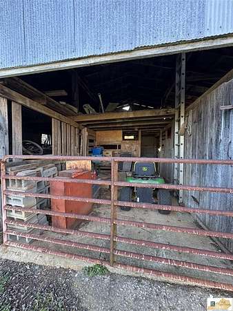 - Barn, Covered Front Porch, Fence, Landscaping, Mature Trees, Partial, Storage Building