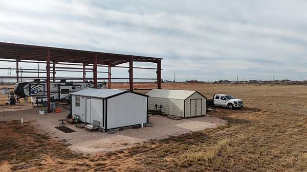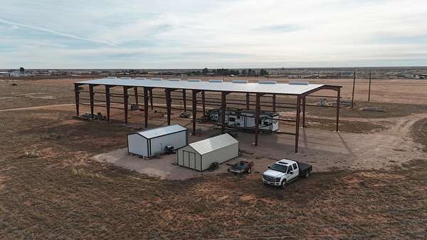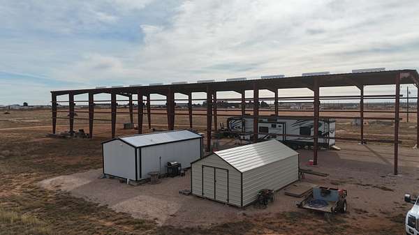 Well-improved property with infrastructure already in place for future development, livestock use, or commercial potential. The property features three RV hookups, including two electric-only connections and one with electric and sewer. One electric hookup is located near the water well, while the remaining hookups are positioned beneath the main building. Electrical service has been designed with additional capacity, allowing for future expansion or further improvements. A large 60' x 180' x 26' steel building is included, featuring a 4-foot concrete perimeter wall for added stability. The building components and accessories are on site, including crane track and gutter pieces. The structure has not been fully erected, and materials are being conveyed as-is; excess materials can be removed prior to closing if desired. The property has received USDA approval for cross fencing, a solar water well, and related livestock improvements, which are transferable to the new owner. If the buyer chooses not to utilize these approvals, allocated funds will be returned without penalty. This property has been thoughtfully staged for maximum capacity, making it a strong candidate for a future custom home with shop, agricultural use, or business operation. A rare opportunity to acquire land with utilities, approvals, and expansion potential already in place.