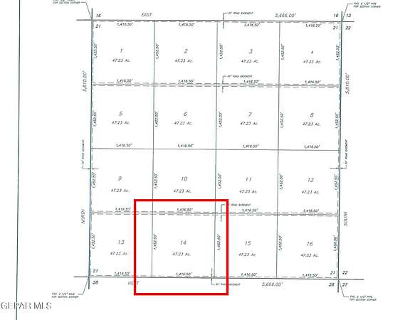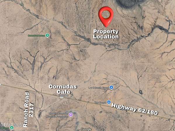 Est $338/mo47 beautiful Acres with easy road access only 3 miles North of Highway 62/180. Located near Cornudas, TX with 360 views around. This area is perfect for your off-grid homestead. Most properties in the area utilize hauled water from nearby Dell City, septic tanks, solar panels and propane. Only an hour drive from El Paso, and 45 minutes to Dell City. Wildlife are all over this area, watch for antelope and more. Photo and boundaries are approximate based off of plat mapping. Measurements are 1,416x1,452 feet.