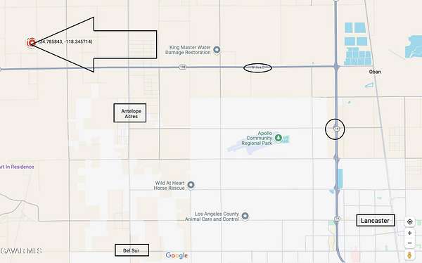 Est $112/moThe Owner will carry, Easy payments, Any Credit OK. Antelope acres area, very nice homes nearby 2+ - Acres of flat land on dirt road. Just 2k ft north of Ave D (Hwy 138) Nice area of west antelope area. Great Mtn Views. Please email me for more useful pictures. We have many others. Address is just an approximate
