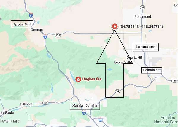 On I-14 take Hwy138 west, Right on 120th St W, Right on Ave C-6