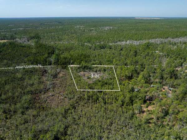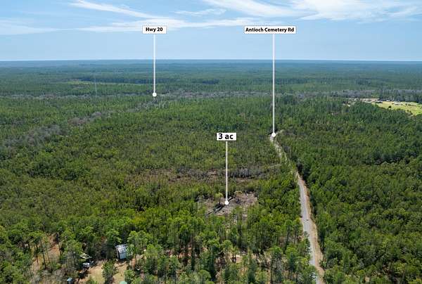 Rare Find!! 3 Acre Value under $100K w/paved Rd offering out-of-way spot, just 3.5 miles outside the city of Freeport FL. Put your pole barn & equipment or grow your garden here with the convenience of town in close proximity. Property is off Highway 20 on Antioch Cemetery Road. Though the property is officially listed with a Ponce De Leon address, it is actually located just 3.5 miles west of Freeport, making it a fantastic investment in a rapidly growing community. This partially cleared parcel is zoned General Agricultural, offering a wide range of possibilities whether you envision building your dream home, starting a small farm, or making a strategic investment. Property is primarily in Flood Zone X, w/only a small section of Flood Zone A (wetlands) in the SW corner, minimizing flood risk while still offering natural beauty. While utilities are not yet present, the land has been recently surveyed, providing a head start on development plans. Conveniently located with easy access to I-20 and the pristine Beaches of South Walton, this property is also near an array of shopping, dining, and entertainment options. The tranquil setting makes it an excellent choice for those seeking privacy, space, and convenienceall within reach of modern amenities. Whether you're looking for a homesite, investment property, or peaceful retreat, this land is full of potential. Don't miss this rare opportunity to own a piece of Freeport's exciting future! Seller has existing survey. Buyer needs to verify building codes, zoning regulations, wetlands & flood zones, etc with proper local authorities to ensure buyer will be able to utilize the property for intended use. Lines drawn on Aerial photos are for estimation purposes only.