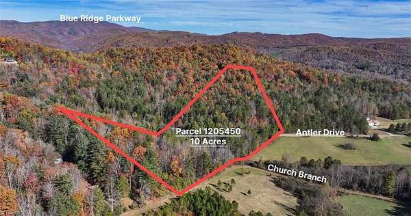 Nestled in the beauty of the foothills and woven together with the gorgeous mountain ranges in western NC--this 10-acre tract is a rare find in Doe Mtn. Estates. Mountain views with a small creek and access to both sides of Antler Drive and no restrictions! Perfect for home, vacation home, hunting land, homestead, investment property or more. Located in close proximity to the Blue Ridge Parkway, Thurmond Chatham Game Lands, Stone Mountain State Park.