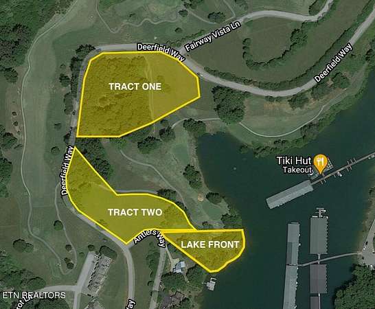 7.10 Acres ~235' of Lake Frontage ~1,500' Road Frontage ~1,072' of Golf Course Frontage 3-slip /5-mooring TVA dock permit This land package includes three golf front/lakefront tracts totaling 7.1 acres with 235 ft of shoreline and year-round water(fluctuates). The gently rolling property surrounds the 3rd and 4th hole fairways and greens. There are water-front and water view building sites that overlook Deerfield Cove. Develop single family homes or multi-family on tracts 1 and 2. A transferable Dock Permit that would allow mooring for 5 vessels is on file. This is the only property in Deerfield that touches both the waterfront and golf course, and one of the nicest undeveloped parcels on Norris Lake. Responsibility of buyer(s) to verify information to their satisfaction. Survey on file.