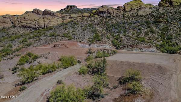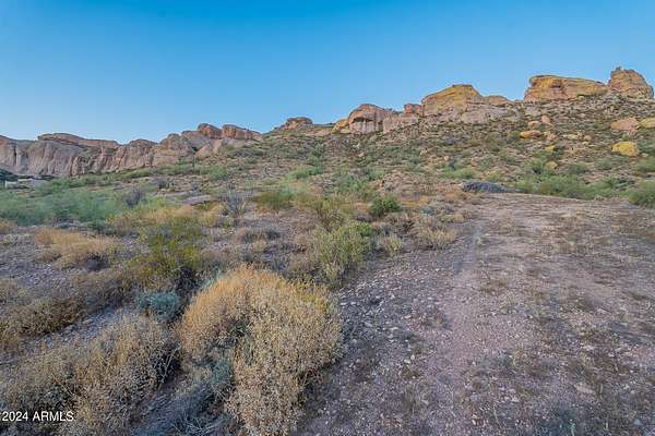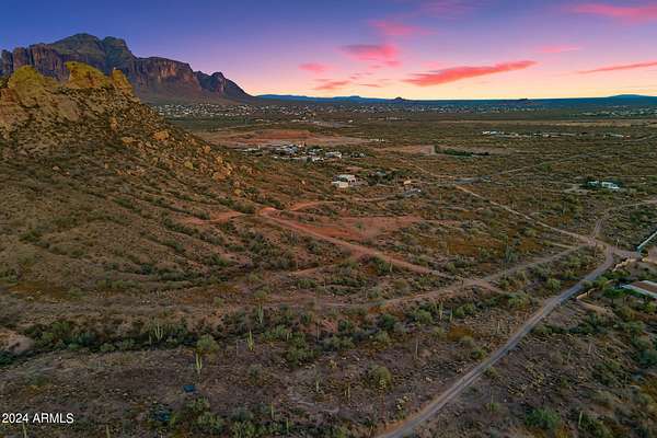 RARE FIND! 1.25 ACRE PARCEL with ONE-OF-A-KIND Mountain Views and Mountain backdrop! Property borders STATE LAND and is VERY PRIVATE. Elevated Parcel with views of the Goldfield Mountains, Bulldog Canyon, Saddle Rock Mountain, and City Lights. NO HOA. Property HAS ACCESS TO WATER - SHARED WELL. Property Owner installed multiple culverts for drainage. House Pad is visible. Perfect for those who love the outdoors - you are +/- 1/2 mile away from Tonto National Forest. Enjoy hiking, horseback trails, and more. Easy drive to Canyon Lake and only 45 min to Sky Harbor Airport. BOUNDARY SURVEY AVAILABLE. Ready for you to build your Arizona dream home!