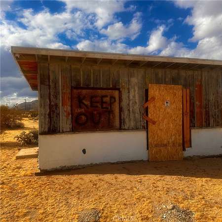 Beautiful southern panoramic views!! Mesmerizing mountain colors and spectacular sun rises and sunsets! Uniquely situated corner lot with an abandoned rec cabin. Utilities are all adjacent - three electrical poles at different locations along the property boundary and the water main is available for tie-in at the property’s northwestern corner at Appian Way and Caster Street. Property is surveyed, the property corners and easement corners are staked, and the survey is approved and recorded by the County of San Bernardino. Located within 15 minutes of the Joshua Tree National Park entrance, close to downtown, but in a private, dark sky, low density area. No title issues or encumberances. Very limited inventory for this type of unique, buildable property. Don’t miss out!Buyer to verify all MLS information, including but not limited to: permits and uses, bed/bath counts, square footage, school information and enrollment availability. Buyer is advised to independently investigate all aspects of the property, and to verify the accuracy of all information provided through personal inspections and with appropriate professionals to the buyer’s satisfaction.Buyer is solely responsible for verifying water, power, zoning, and county building requirements.Buyers are responsible for confirming the accuracy of all information and are encouraged to conduct their own due diligence or retain qualified professionals. No blind offersThis is a CABIN with living restrictions.