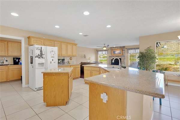 The interior features an open floor plan with a separate formal living room and formal dining room, ideal for entertaining. The spacious kitchen opens to the family room and offers ample cabinet space, a cozy sitting area, and a welcoming fireplace. The generously sized primary suite includes a private ensuite bathroom and its own fireplace, creating a relaxing retreat. Truly a pleasure to show.