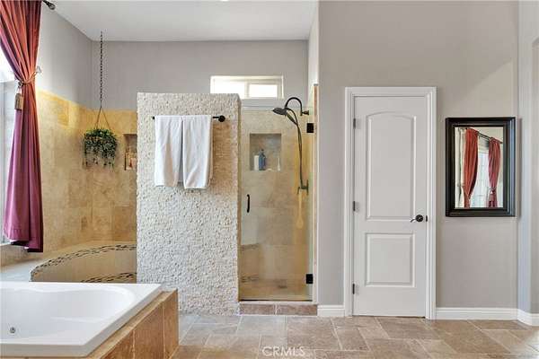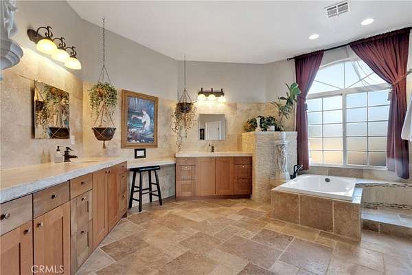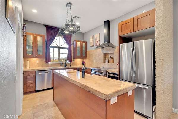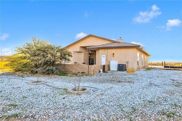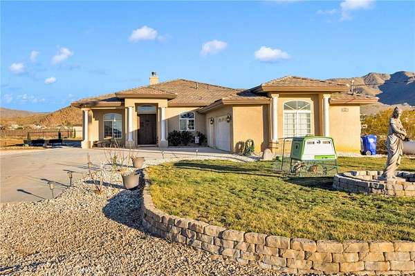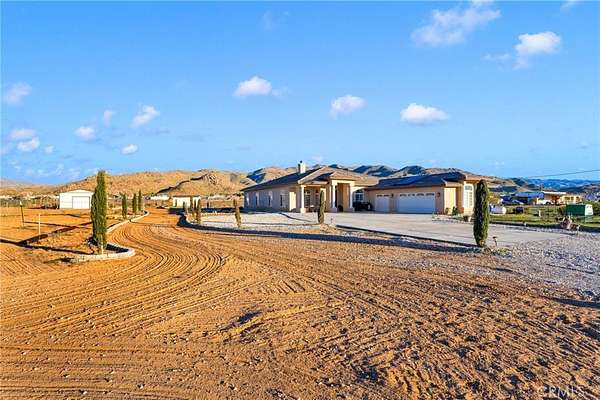 Searching for a truly special property that offers space, privacy, and tranquility in the High Desert? Welcome to 15485 Barker Road, a rare and breathtaking estate set on 4 acres of desert. This custom home offers 3,144 square feet of thoughtfully designed living space, featuring 4 spacious bedrooms, 4 bathrooms, and a 3-car garage. From the moment you arrive, you are greeted by an extra-large custom wood entry door that opens to stunning travertine tile flooring flowing throughout the home. Soaring ceilings, a formal living room, and a formal dining area create the perfect setting for entertaining and everyday living. A striking stone fireplace serves as a beautiful double-sided centerpiece, shared between the formal living room and the family room. The kitchen is a chef's delight, complete with custom concrete countertops, rich wood cabinetry, a Bosch stainless steel dishwasher and microwave, and an oversized Italian induction range and oven--all electric and highly efficient. Enjoy washing dishes while taking in breathtaking desert sunsets right from your kitchen window. The expansive primary suite is both inviting and private, offering a walk-in closet plus additional closet space. The primary bathroom features concrete countertops, rich cabinetry, and travertine floors. One of the secondary bedrooms includes its own ensuite bathroom, perfect for guests or multi-generational living. This property is designed for comfort and self-sufficiency, featuring a RainSoft whole-house water softener paired with a private well that provides ample water for both the home and the grounds. The well is housed in its own 10x20 custom well house, built for easy access and maintenance. Energy efficiency is unmatched with a PAID Tesla solar system, boasting 23.52 kW, 6X Powerwalls, and two batteries--meaning no electric bills. Electric vehicle owners will appreciate the convenience of charging right at home. Step outside through the double sliding glass doors to a dreamy outdoor patio, perfect for relaxing under the lights and stars. Take a stroll through your very own vineyard--yes, a vineyard in the desert! With over 1,100 curated vines, including Zinfandel, Malbec, Sangiovese, and Chenin Blanc, this property is truly one-of-a-kind. A fully permitted 20x20 single-car garage on a permanent foundation is ready to become a wine house, toy garage, workshop, or man cave. This extraordinary property offers a lifestyle unlike any other.