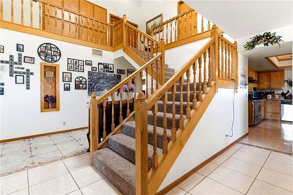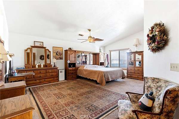 Sprawling multi-generational retreat on 4.2 acres in Apple Valley! This Turnkey contemporary two-story home offers approx. 5,469 sq ft with 7 bedrooms and 4 bathrooms, including TWO primary suites plus additional main-floor bedrooms—ideal for extended family, guests, or flexible home-office / hobby space. Upstairs, a dedicated office with a closet and egress can easily function as an optional 8th bedroom. Vaulted ceilings, granite counters, a large kitchen with gas cooktop, double ovens and pantry, plus multiple living areas including a family room and game room create room for everyone to spread out. Cozy up to multiple wood-burning fireplaces, then step outside to enjoy covered patio areas and wide-open space.