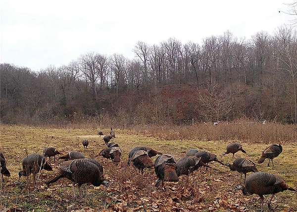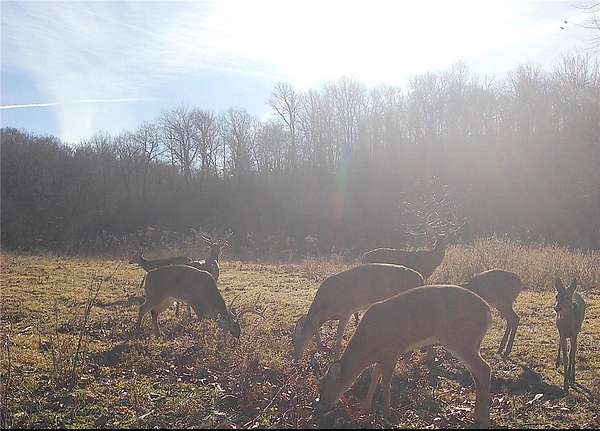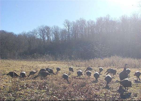 Trail camera photos show multiple mature whitetail bucks, and large groups of wild turkey consistently. The mix of creek frontage, cover, and open ground supports excellent hunting and recreational potential.