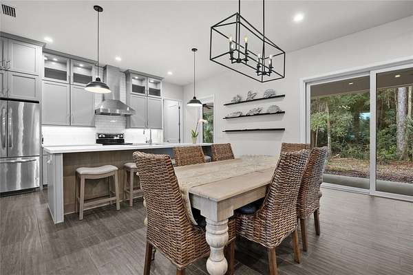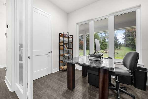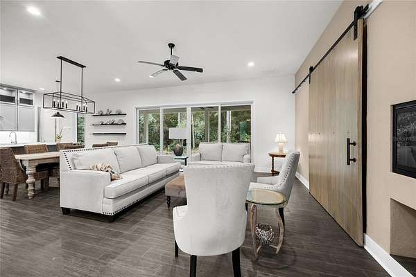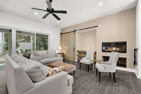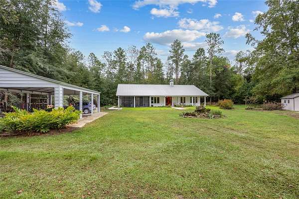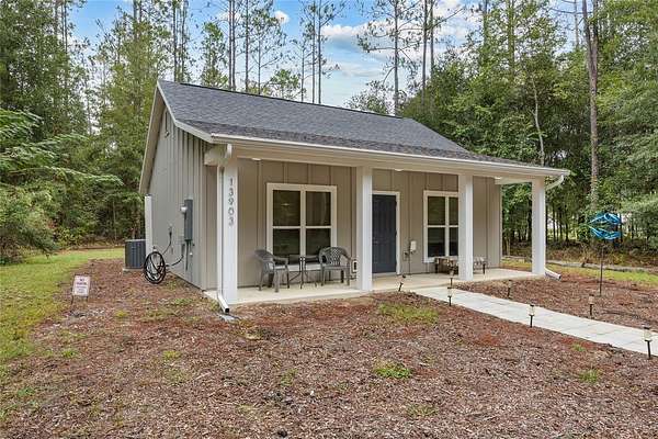 Under contract-accepting backup offers. One or more photos were virtually staged (fire shown in fireplace). Offering a peaceful country lifestyle without sacrificing city convenience is this hidden gem in Grassy Lake Estates less than 10 miles from University of Florida! Sitting on 6.32 gorgeous acres zoned for horses is not 1, but 2 homes! There's a stunning like-new 1,872 sq ft 3-bed, 2-bath home built in 2018 by Robinson Renovation & Custom Homes, Inc., and an adorable 900 sq ft 2-bed, 1-bath guest house built in 2021. The exquisite modern farmhouse features 10 ft ceilings, high-end finishes, a sophisticated neutral palette, porcelain wood-look tile, Corian countertops, and tranquil vistas throughout. Stepping indoors you will find yourself in a huge great room that highlights a wood-burning fireplace, a clever barn door covering the TV, and glass doors overlooking the private backyard. Custom lighting showcases the dining area and designer island kitchen packed full of elevated aesthetics including stainless steel appliances, focal-point range hood, classic white subway tile backsplash, and custom cabinetry. A split bedroom plan has the primary suite off the kitchen. The spacious suite includes a barn door entry into the sizable ensuite boasting double sinks, bathtub, huge walk-in shower, and white subway tiles. On the other side of the home are two guest bedrooms with upgraded closets and a full guest bath featuring a glass-enclosed walk-in shower with white subway tiles, consistent with the home's style. There is an office with large windows and glass doors for privacy, an efficient laundry room with cabinets and shelving, a welcoming front porch that has a screened area with a garden potting sink, and a covered back porch running the length of the home. Additional bonuses include a new water treatment system, spray foam insulation in the attic, and a 3-bay carport. Located in Archer, the property is an easy commute to top medical facilities like UF Health Shands Hospital and HCA Florida North Florida Hospital. Excellent shopping and dining are easily accessible, with Celebration Pointe, Butler Town Center, and the unique boutiques and restaurants of Haile Village Center all within a comfortable driving radius. Outdoor enthusiasts will appreciate the proximity to nature parks and trails, including the Gainesville-Hawthorne State Trail for biking and hiking. This location truly captures the essence of private country living while keeping all of Gainesville's major employment, entertainment, and retail centers well within reach. If you have been dreaming of a luxurious home in the country close to town where you can create a homestead or bring your horses, don't let this opportunity pass you by!