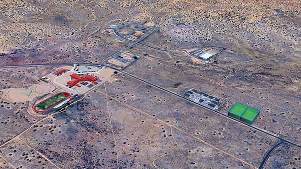 Both lots have direct frontage on county-maintained Dine'h Tah Blvd, the gravel road is plowed in winter and easy to drive any day of the year. They sit literally across the street from the nice White Mesa Apartments complex, so you get that safe, established neighborhood feel with power close by and no "middle of nowhere" worries.